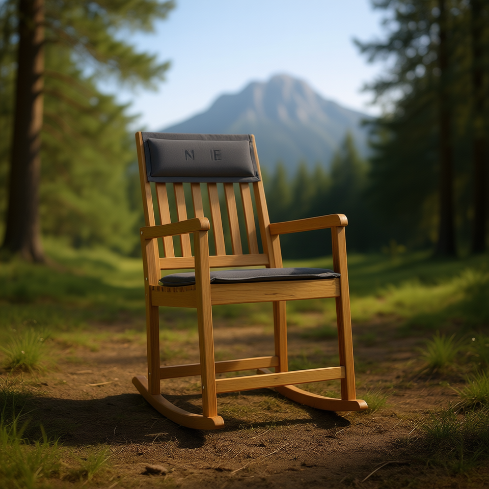 Chaise à bascule en bois d'acacia avec coussin en mousse polyester, mobilier de jardin d'extérieur, style rustique