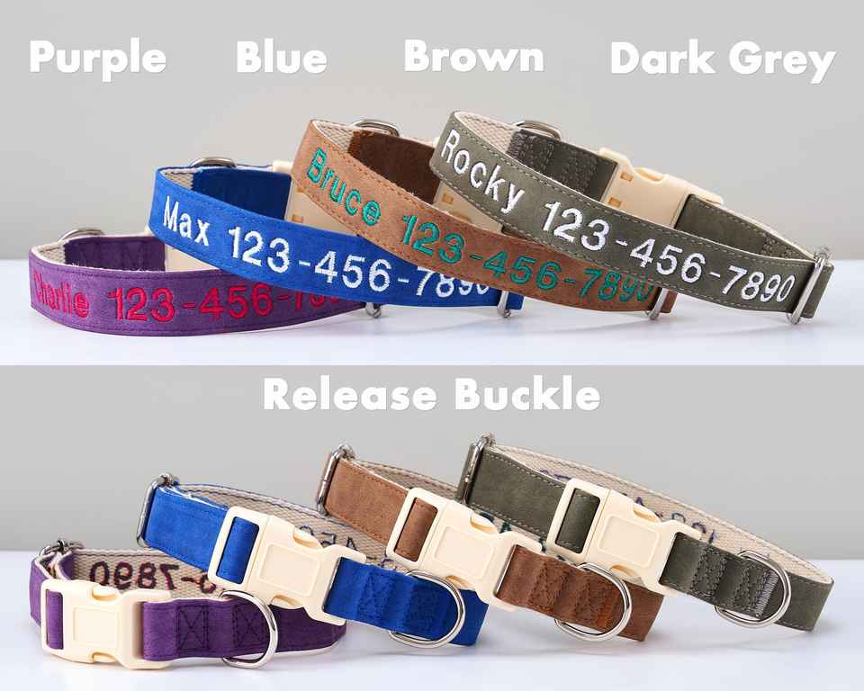 Dark Grey Suede Leather With Leash, Custom Embroidered Pet Name Collar Adjustable, Perfect Gift For Puppy Lovers & Dog Mothers