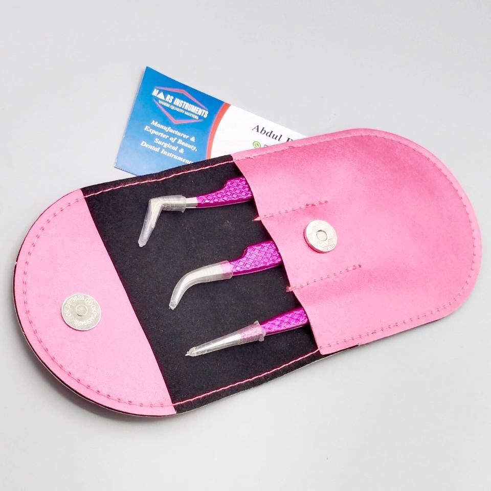 Pince à épiler en acier inoxydable durable rose foncé avec pointe pointue avec pochette confortable