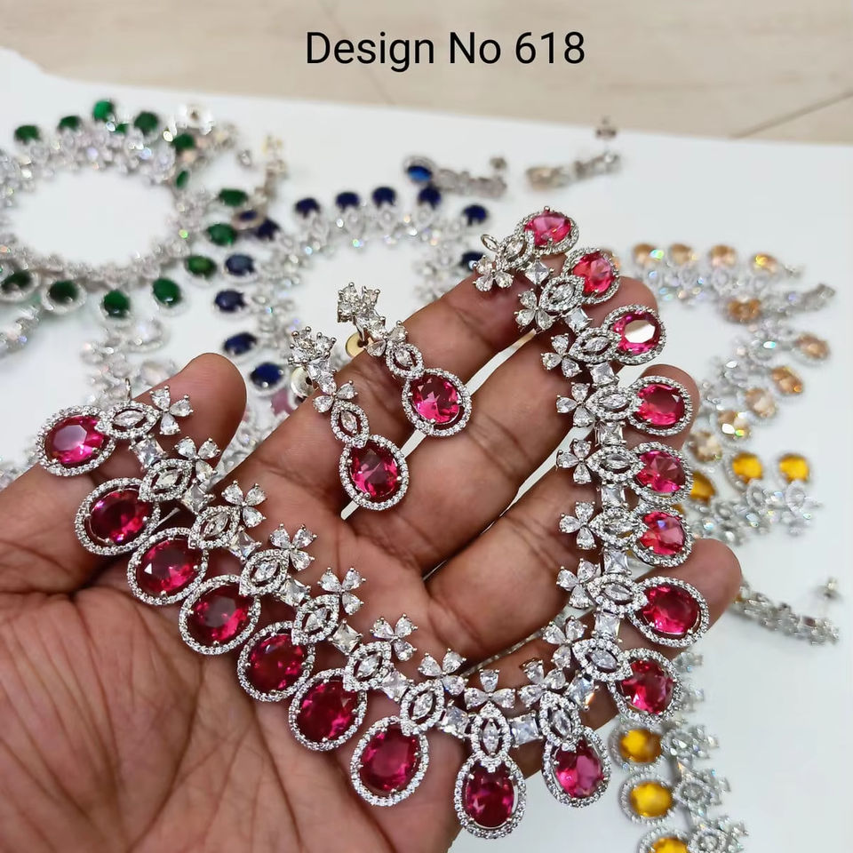 Parure de bijoux de mariée élégante en strass rose foncé, boucles d'oreilles chandelier et collier, plaqué argent, pour mariées spéciales