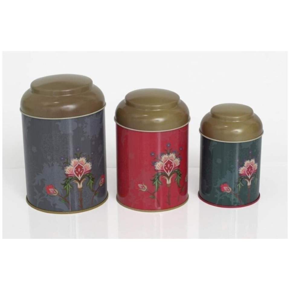 Ensemble de boîtes rondes en métal violet foncé Stockage d'aliments ménagers écologique de luxe Ø120 Ø105 Ø90 avec couvercle en dôme (Ensemble de 3)