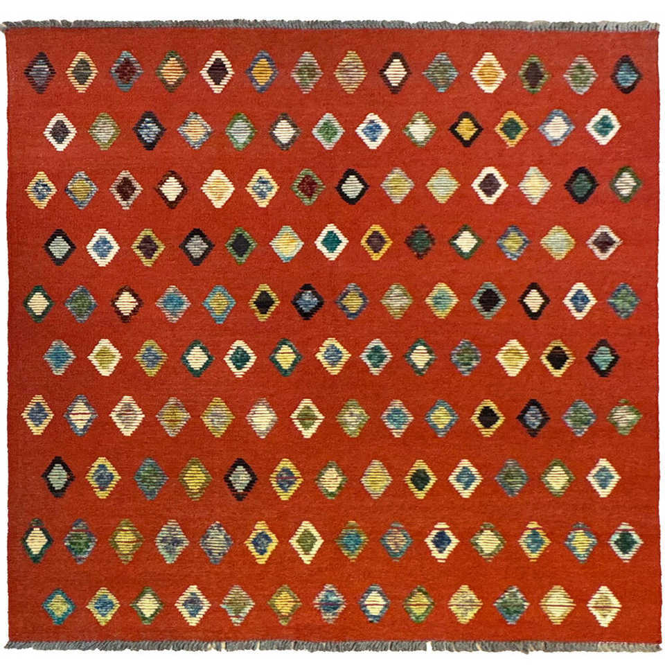 Tapis Kilim de couleur rouge foncé, petits tapis à motifs carrés, tapis de travail 100% brodés, dhurries pour la décoration du salon