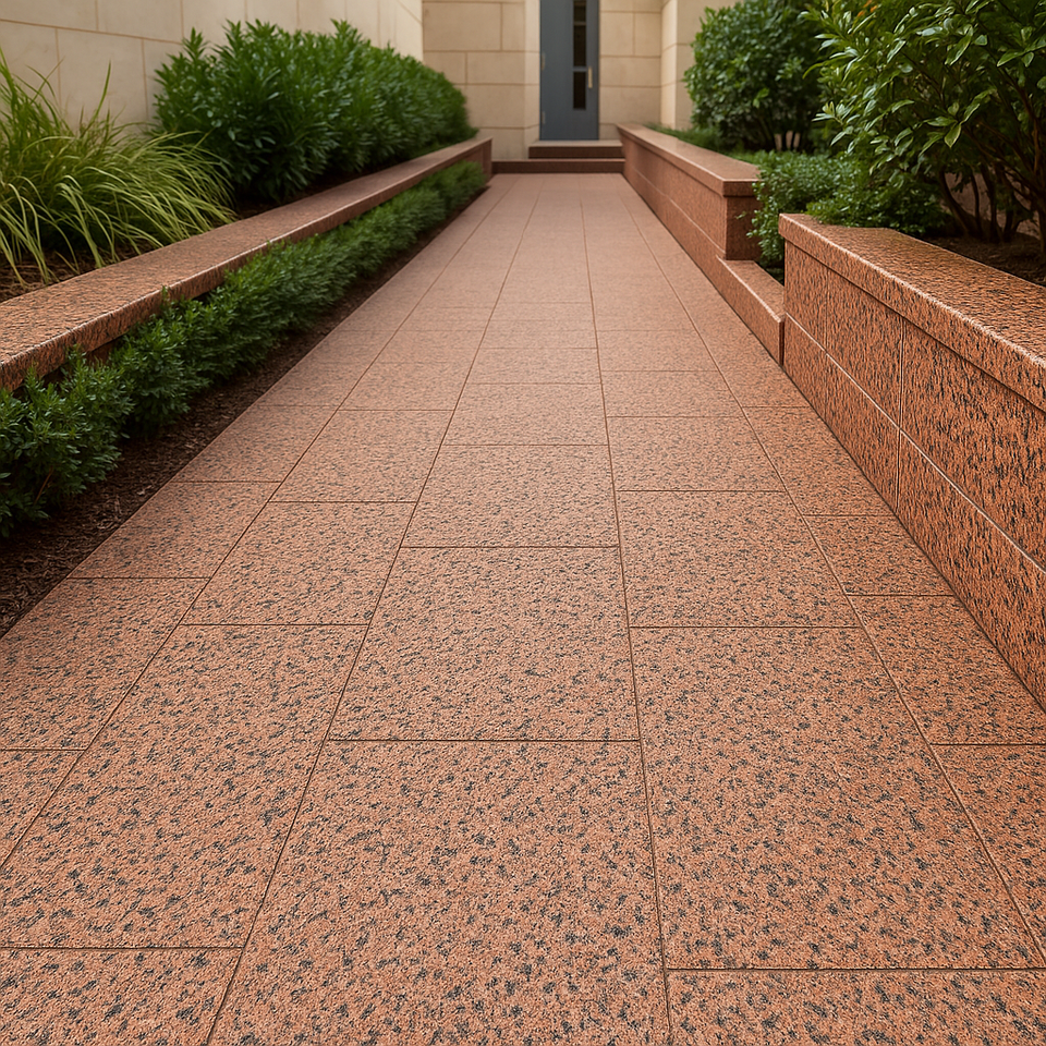 Granite Rosa Hody foncé, finition sablée moderne, antidérapant, découpé sur mesure, applications extérieures, pierre décorative, respectueux de l'environnement