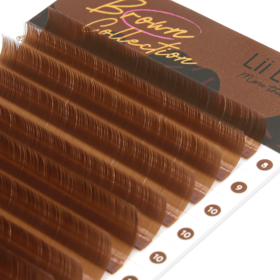 Dark brown lash tray russian volume lashes lightweight handmade semi brown lashes wholesale mink super soft fluffy