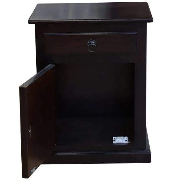 Tabouret en bois de couleur noyer foncé et table d'appoint avec étagère et rangement pour salon Meubles exclusifs disponibles