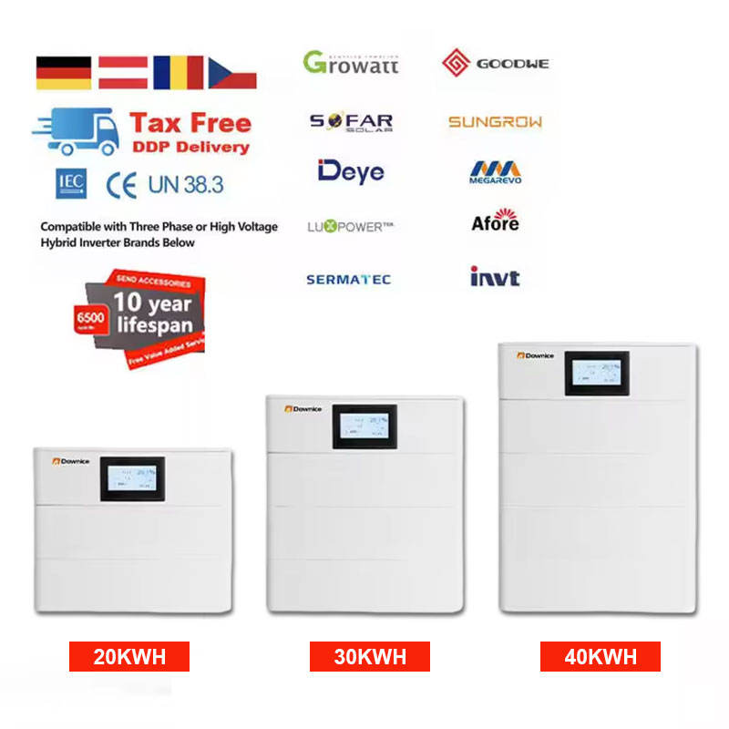 Système haute tension Dawnice 20 Kw 30 kw 40kw Batterie Lithium Ion empilée 51.2V 280Ah Batteries de stockage d'énergie