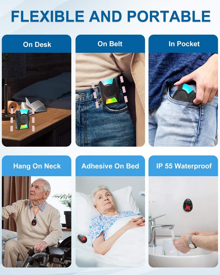 Sonnette de porte avec lumière stroboscopique LED Daytech CC21, vibreur, appel pour soignant, avertisseur sonore pour personnes âgées, sourdes, son fort, utilisation en hôpital, restaurant, clinique, café
