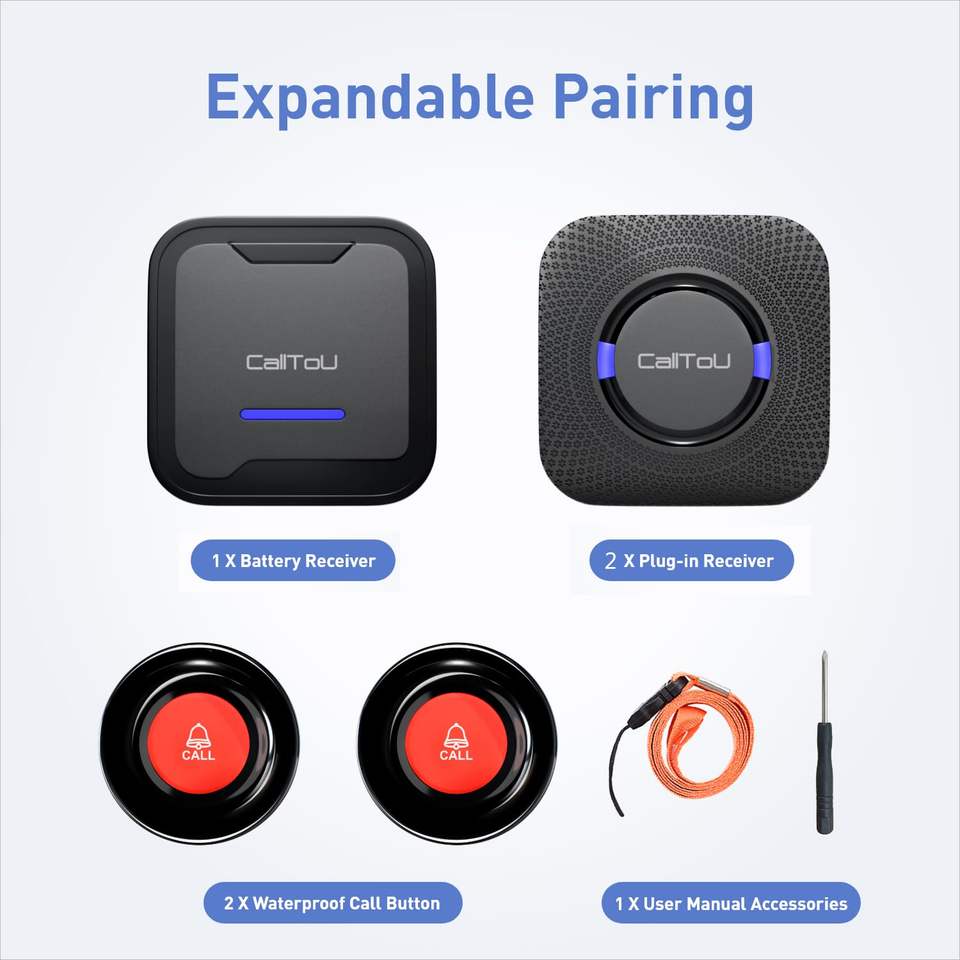 Daytech Plug-in Receiver Battery Portable Receiver Wireless Caregiver Pager Call Bell for Elderly Patient