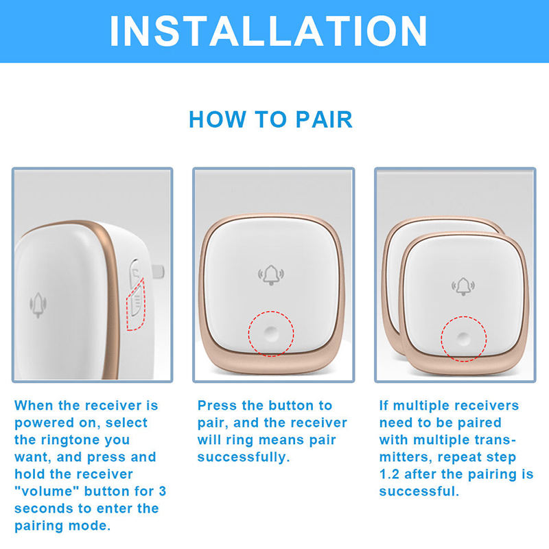 Sonnette sans fil autonome Daytech avec 38 sonneries, étanche IP44, son 110 dB, portée 300 m pour appartements
