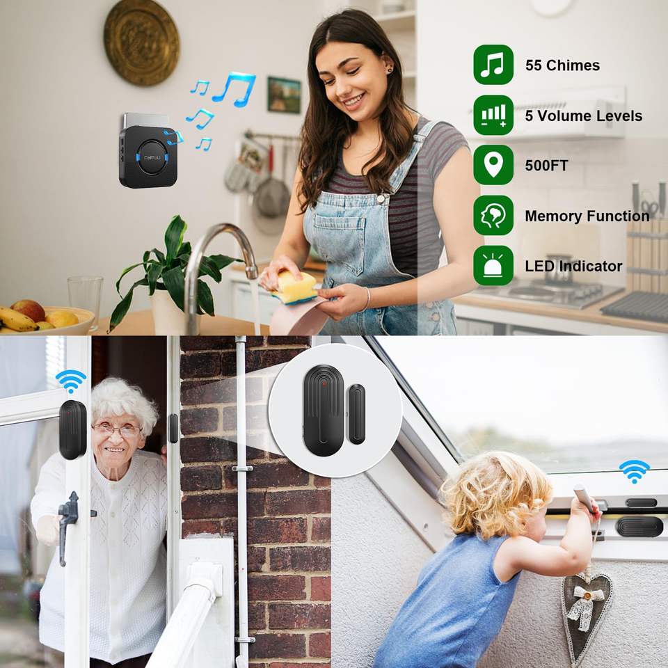 Alarme de porte sans fil Daytech avec détecteur de présence, sonnette d'alerte, 55 mélodies, portée du signal de 500 pieds, idéale pour les patients atteints de la maladie d'Alzheimer