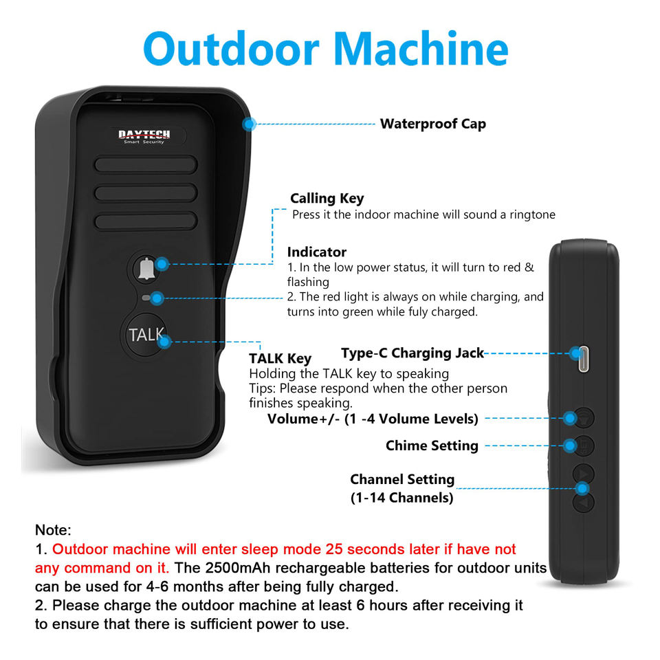 Daytech – sonnette de porte étanche sans fil, 14 carillons, 4 niveaux de Volume, interphone longue portée, sonnette d'interphone sans fil pour la maison
