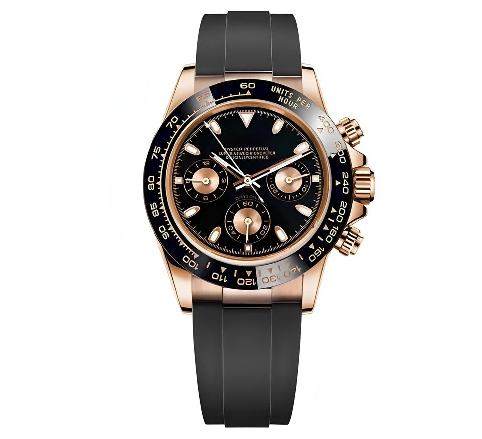 Daytonaa rose gold black Seikos Vk63 Movement MOD Dial Watch