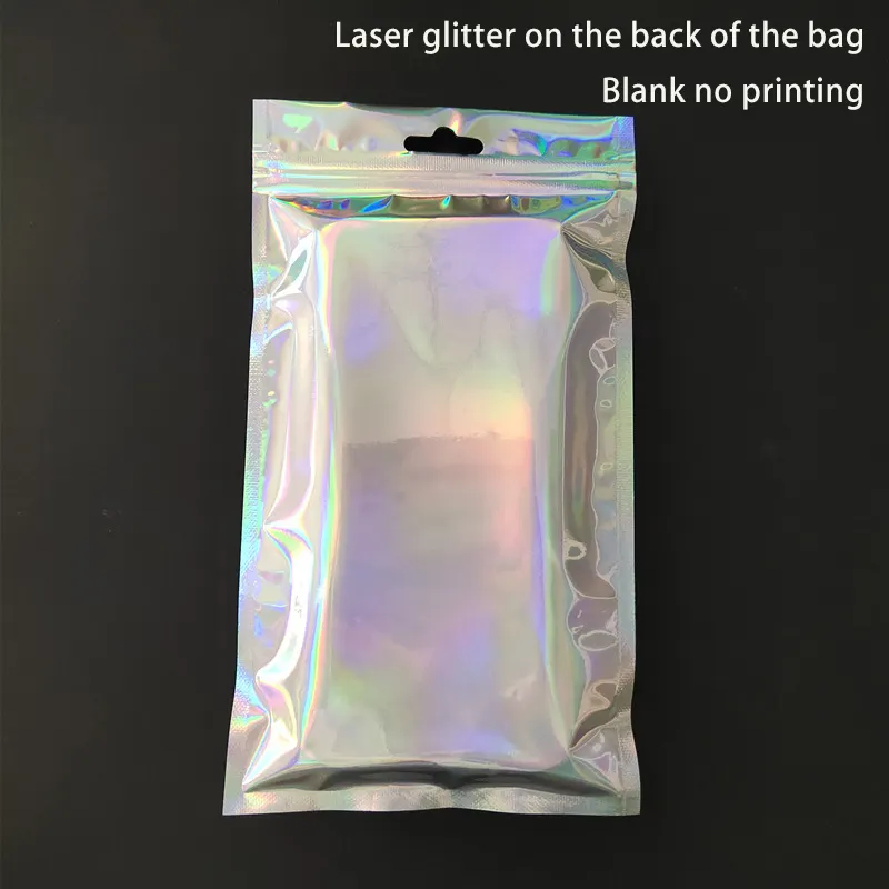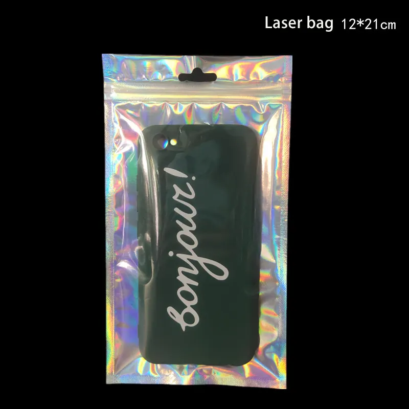 Dazzle Pull os sac en plastique translucide ornements cadeau étui de téléphone portable de haute qualité câble de données sac à fermeture éclair sac laser