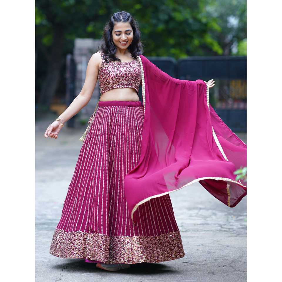 Dazzling Magenta Sequins Georgette Engagement Wear Lehenga Choli