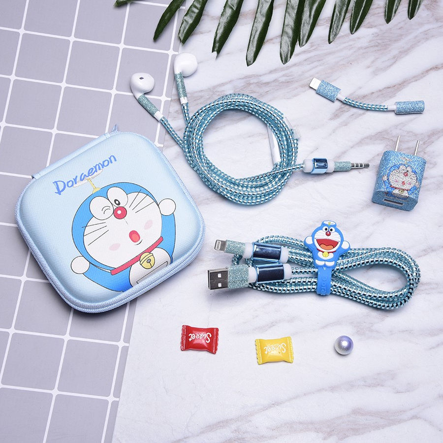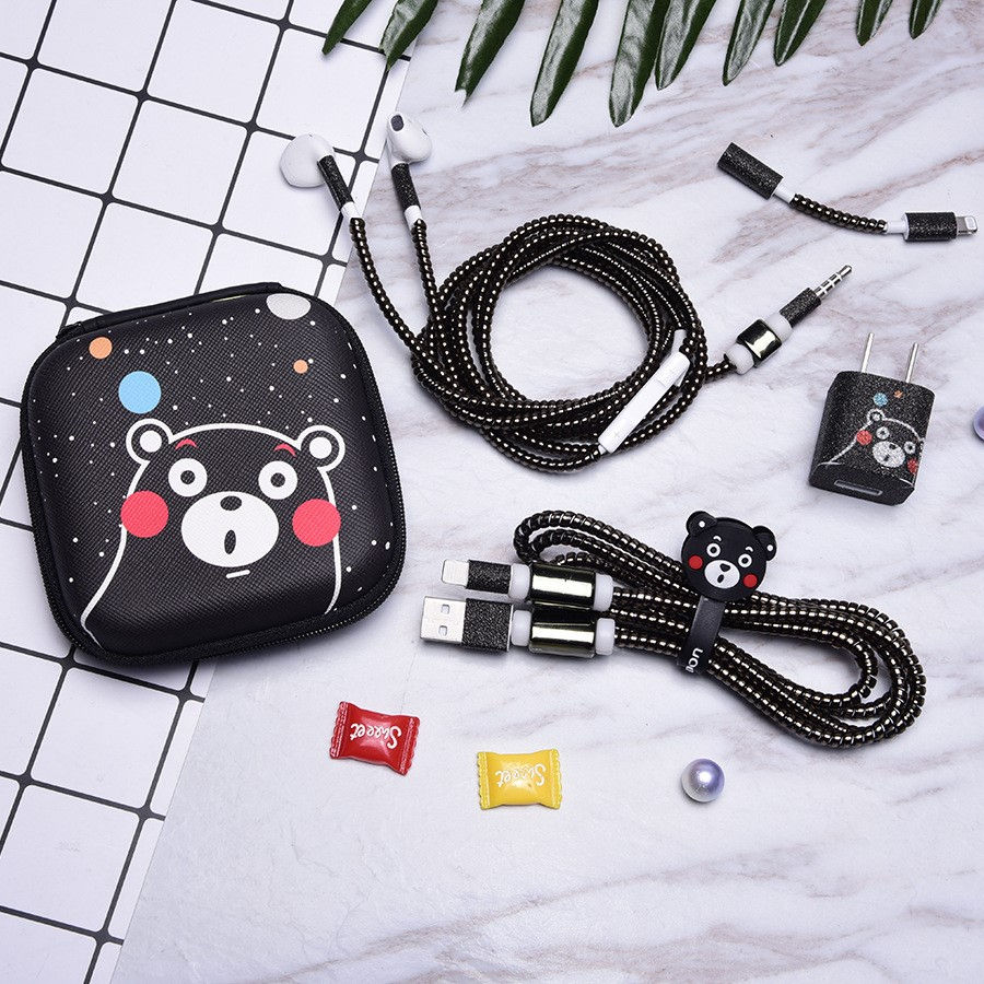 Éblouissant Protection Corde Dessin Animé Mignon Dispositif D'enroulement Carré Paquet De Stockage Câble et Chargeur Autocollant Protecteur Kit