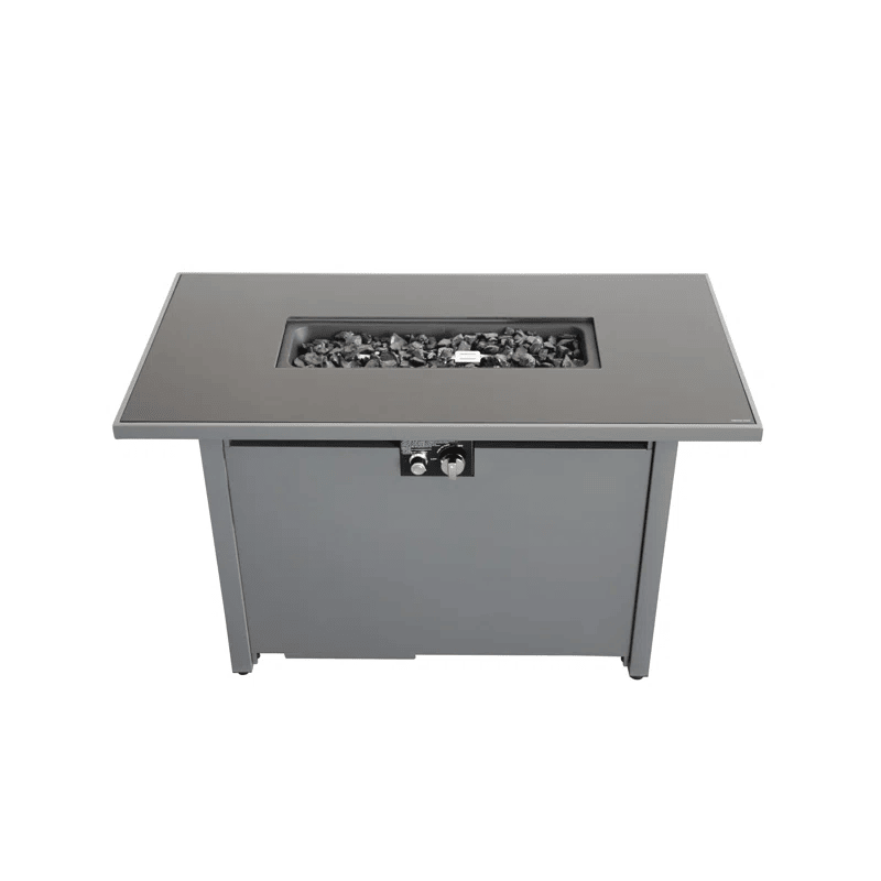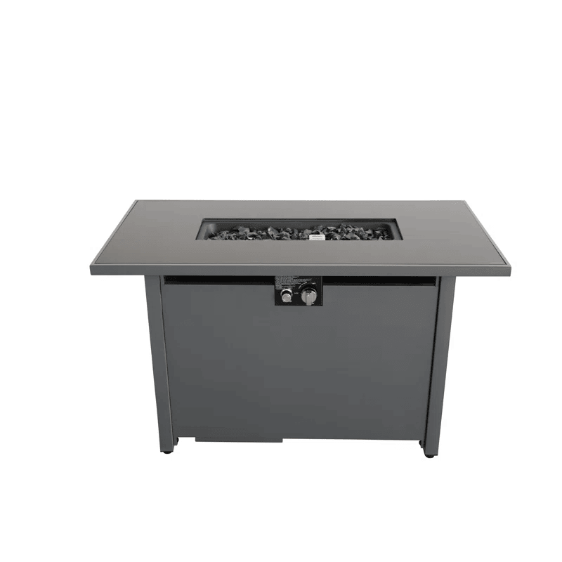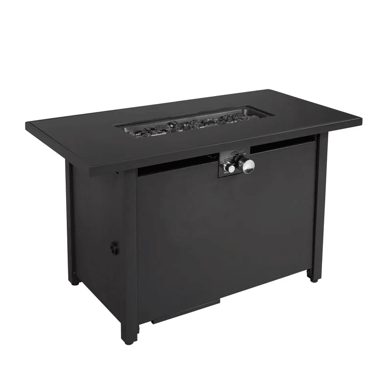 Table de foyer rectangulaire en acier noir Db 42 avec combustible bioéthanol et verre de protection, design moderne pour extérieur