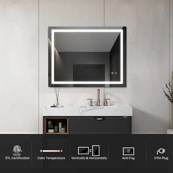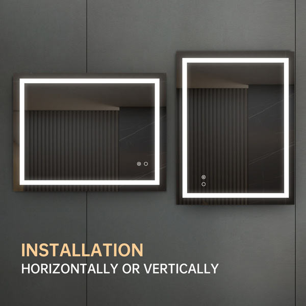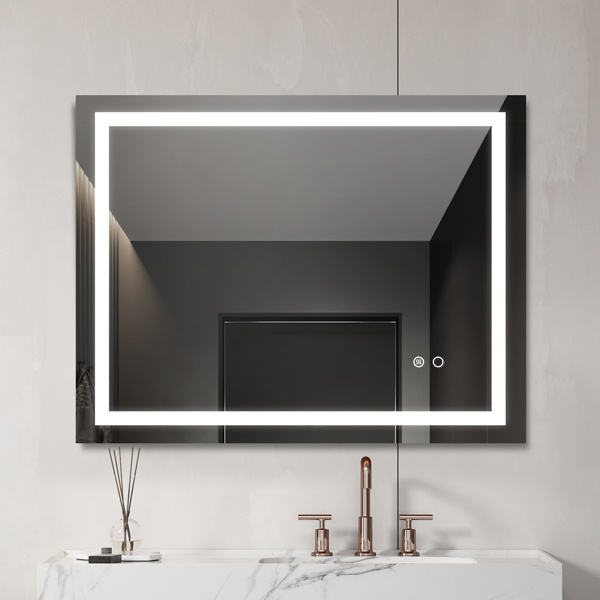 Miroir LED rectangulaire mural avec commande tactile, design moderne pour salle de bain, cadre en aluminium, verre