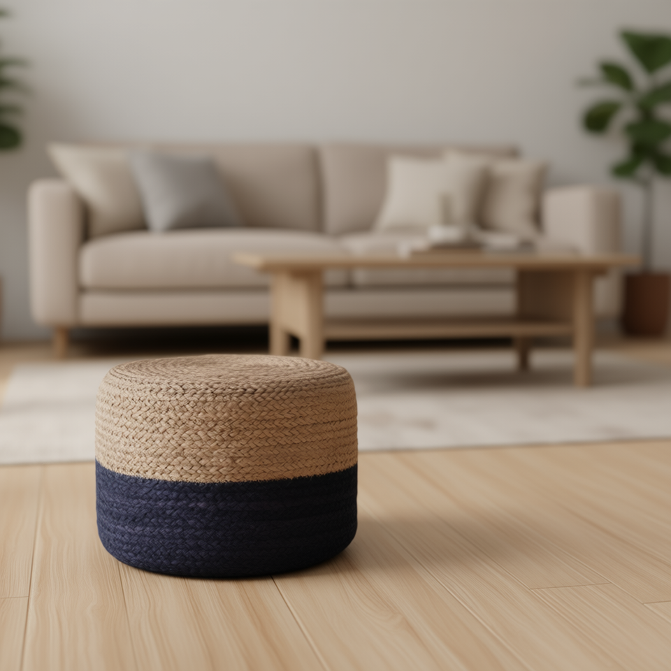 Pouf traditionnel Db Lydia bleu marine en MDF naturel avec rangement, pour intérieur et extérieur, tabouret ottoman