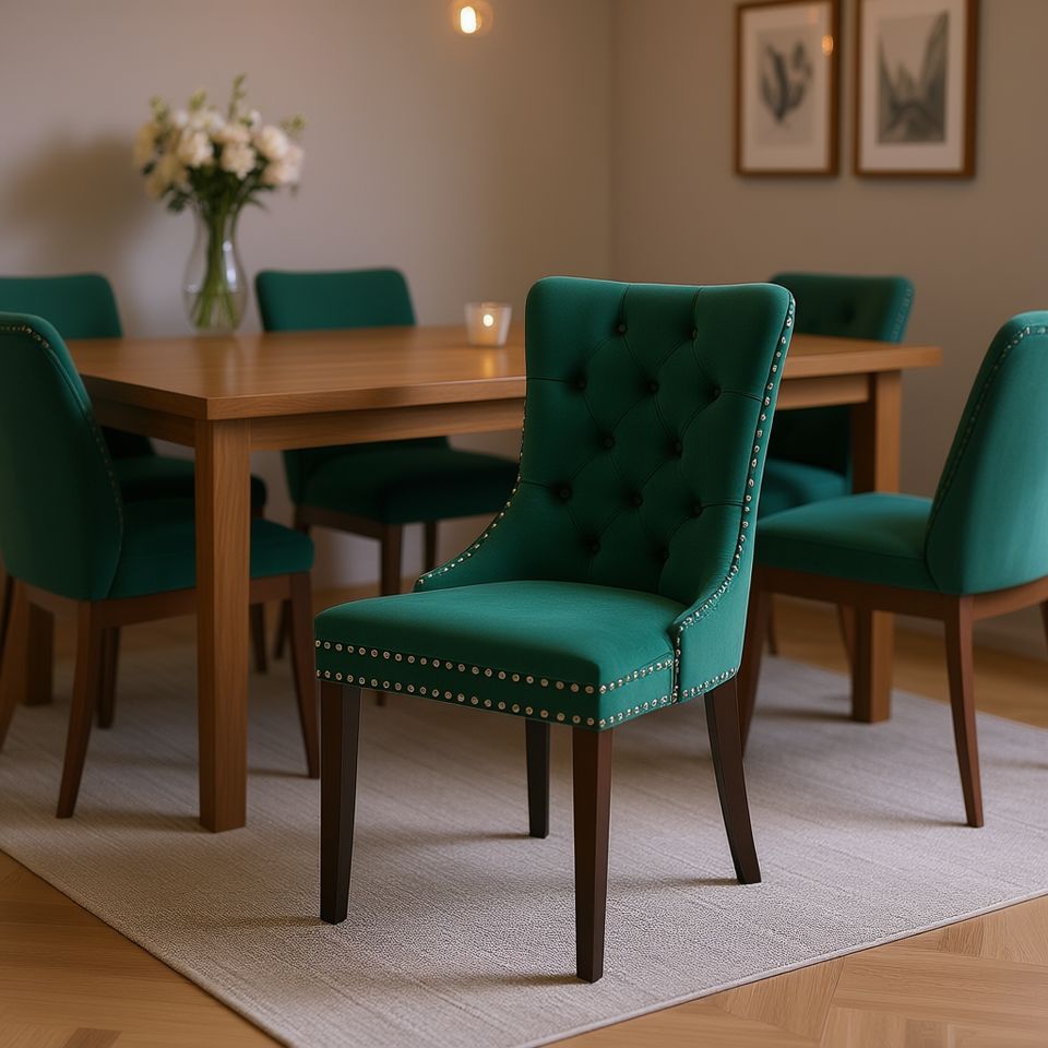 Chaise de salle à manger moderne en velours rembourrée de la collection Db Nikki, pieds en bois massif, garniture cloutée, modèle D0100H7FJ6T
