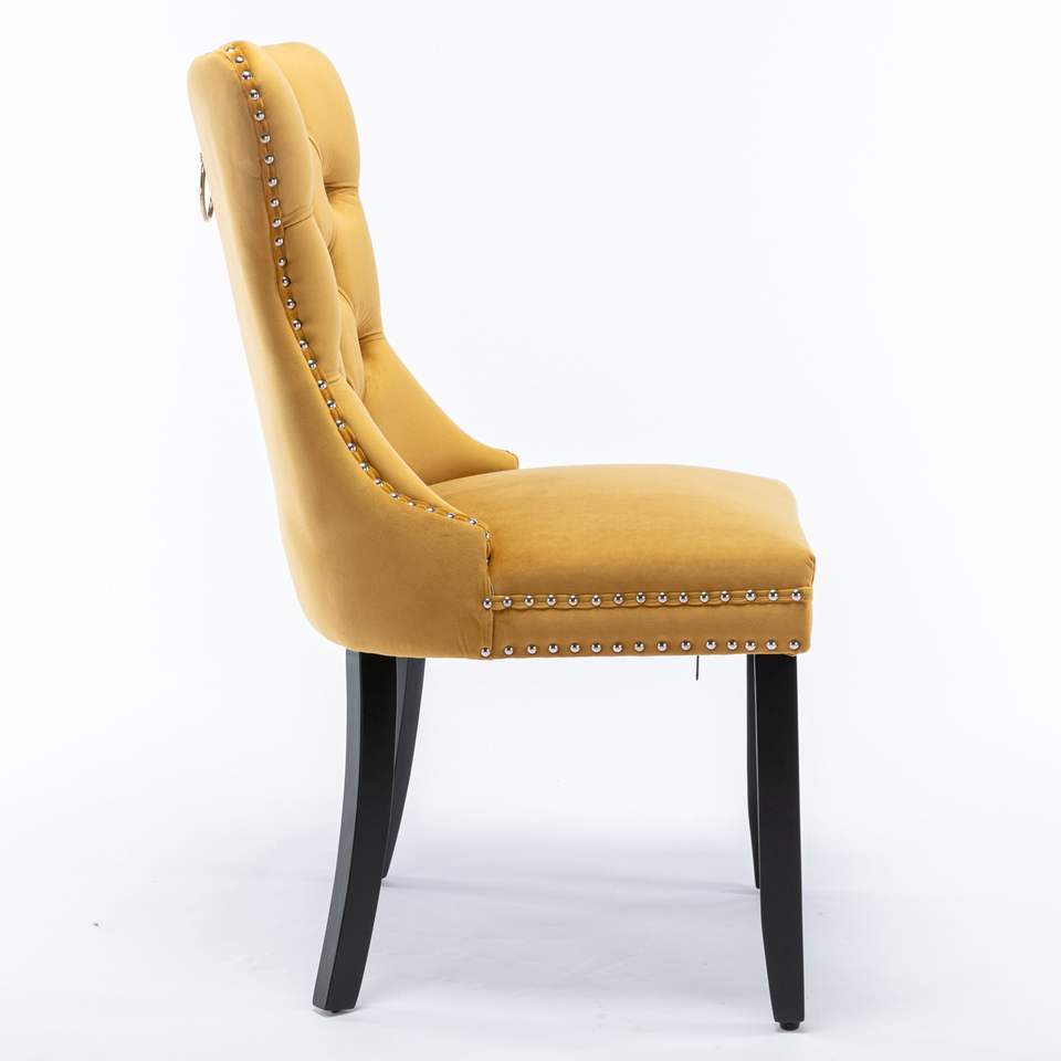 Chaise de salle à manger moderne en velours de la collection Db Nikki, avec pieds en bois massif et garniture cloutée