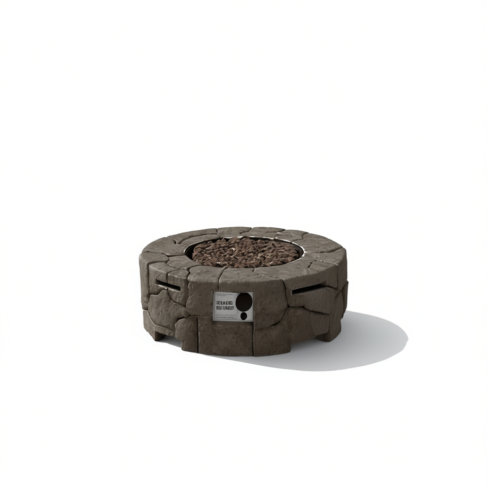 Brasero d'extérieur Db 9 H x 28 L en béton gris anthracite, style rustique, pour brûlage de bois, autoportant, pour espaces de convie dans le jardin