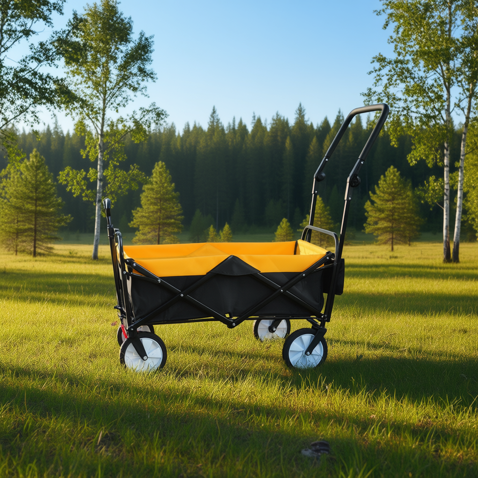 Chariot utilitaire d'extérieur Db à 4 roues, pliable, chariot de jardin pliable, chariot à main en métal jaune pour le camping et la randonnée