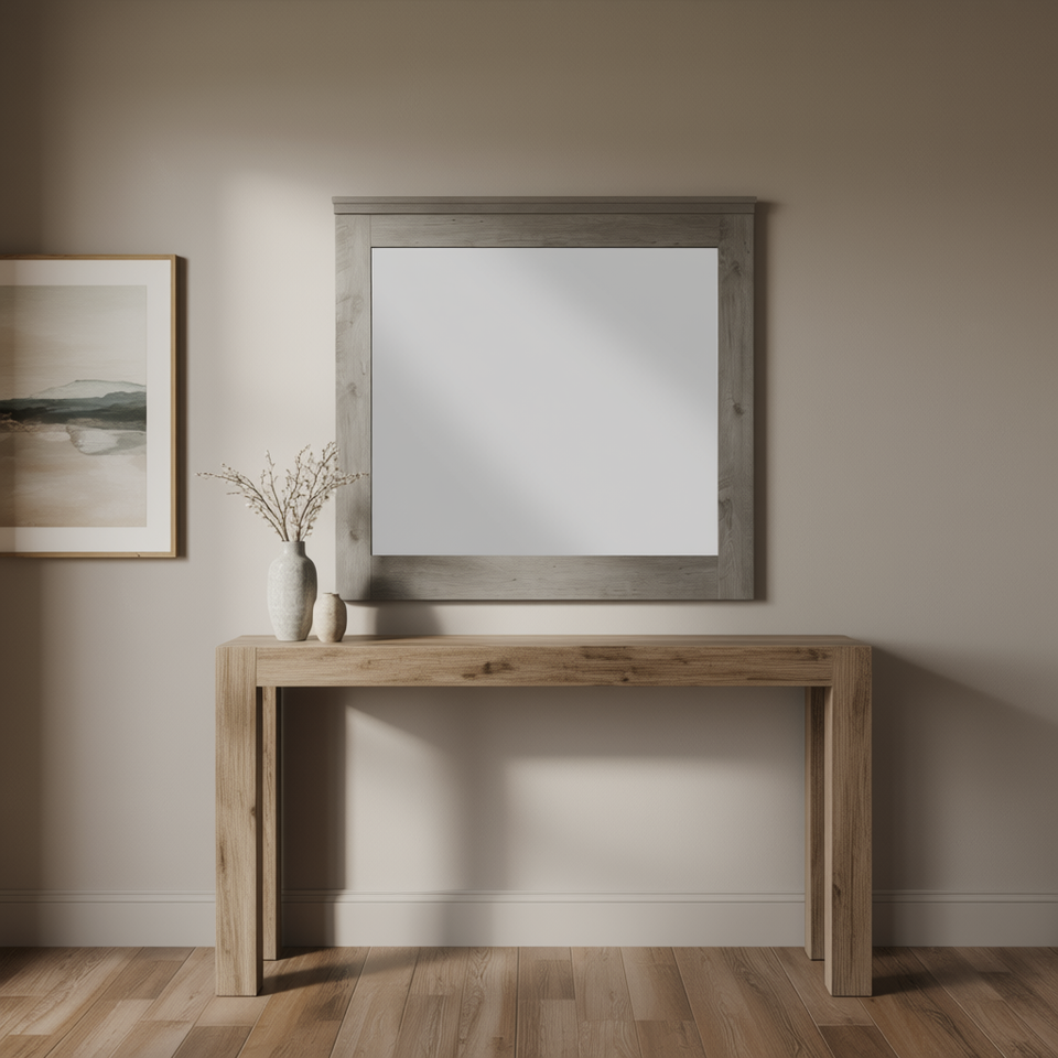 Miroir rectangulaire décoratif encadré en chêne gris rustique Db Vidalia, grand format, pour couloir, salon, salle de bain