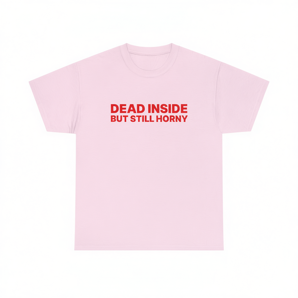 T-shirt rose « Dead Inside But Still Horny » unisexe taille adulte M – T-shirt drôle et ironique