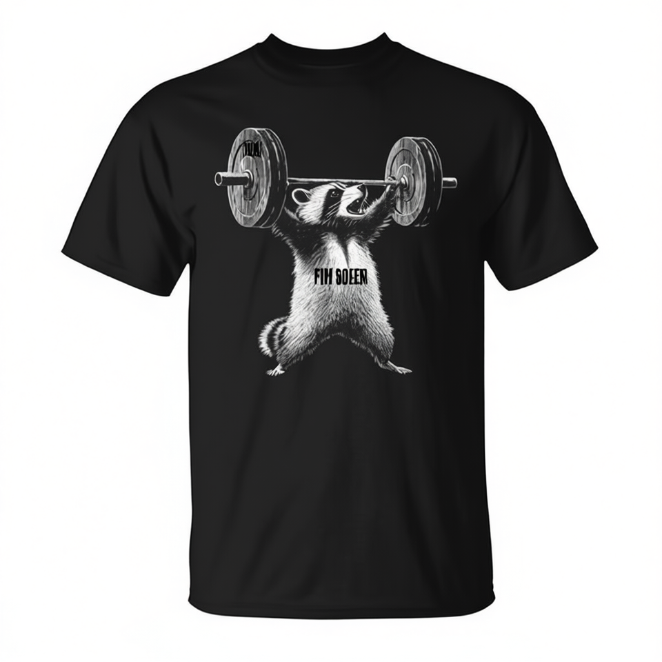 T-shirt promotionnel Deadlift Raccoon Gym pour l'entraînement musculaire et le fitness