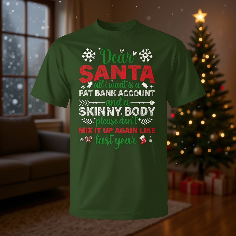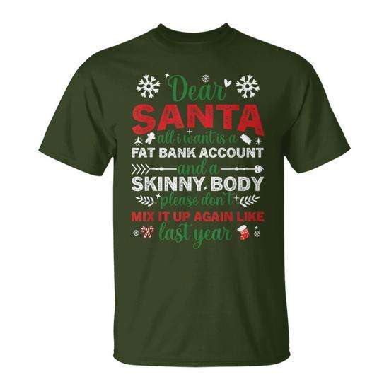 Cher Père Noël, T-shirt de Noël pour un corps mince et un compte bancaire bien garni