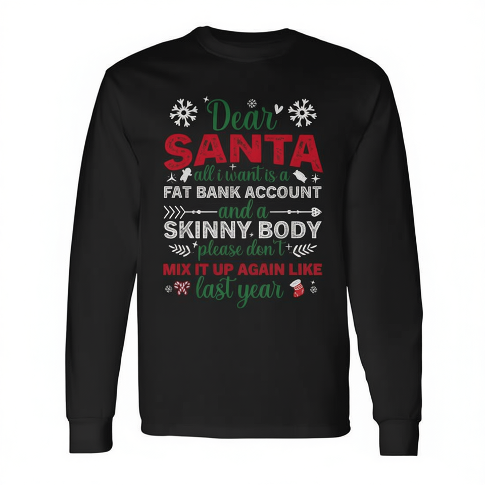 Dear Santa Fat Bank Account Skinny Body Christmas T-shirt à manches longues