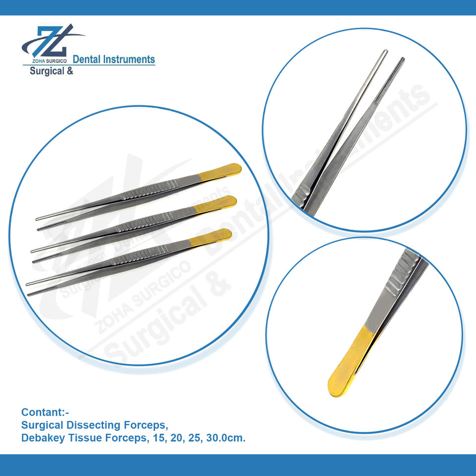 Debakey Pince à tissu en acier inoxydable de qualité chirurgicale 20 cm Pince vasculaire atraumatique 1.5mm Ensemble d'instruments demi-aiguille