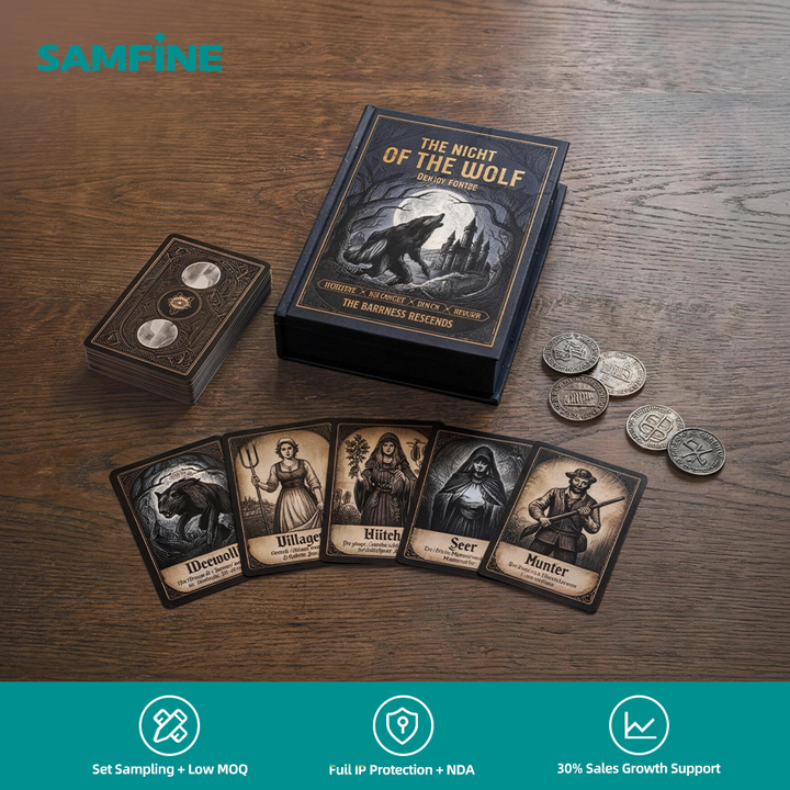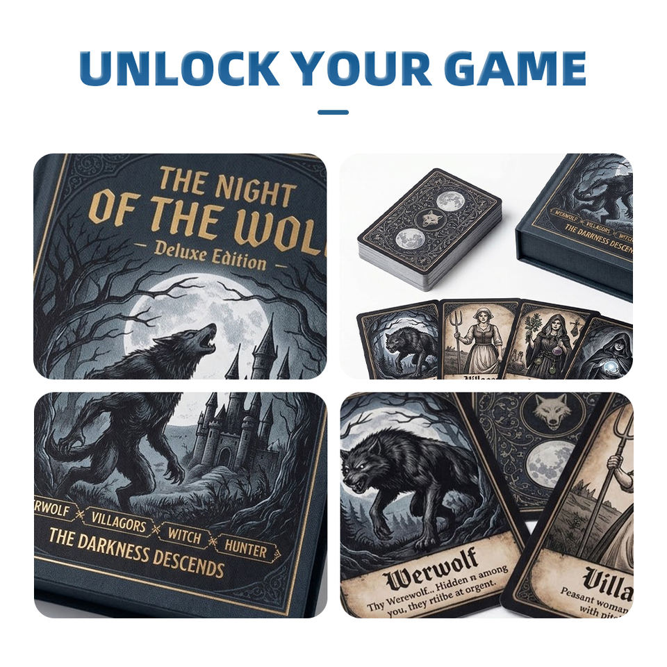 Boîte rigide carrée en carton recyclé texturé gaufré, design unique REACH, écologique, pour familles, communautés, clubs, Loup-garou