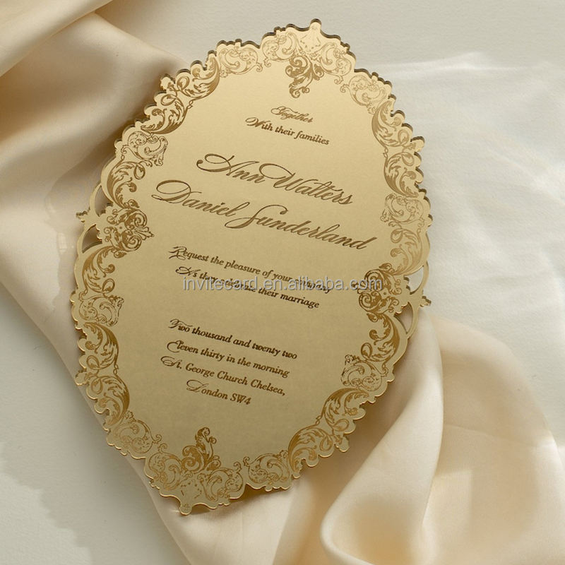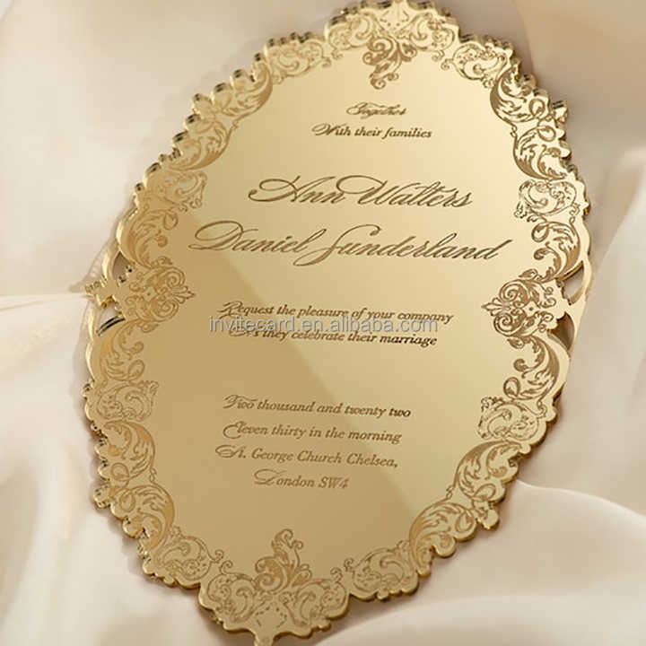 Invitation de mariage en plexiglas doré miroir décadent billets de coing découpés au laser gravés invitations de voeux d'anniversaire en acrylique