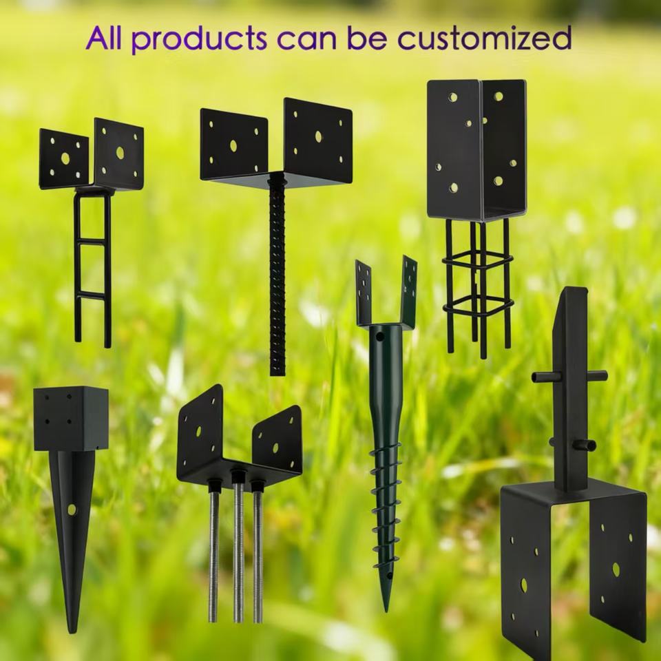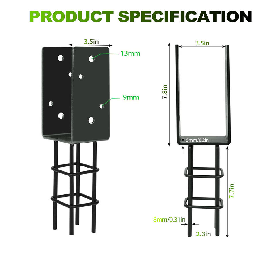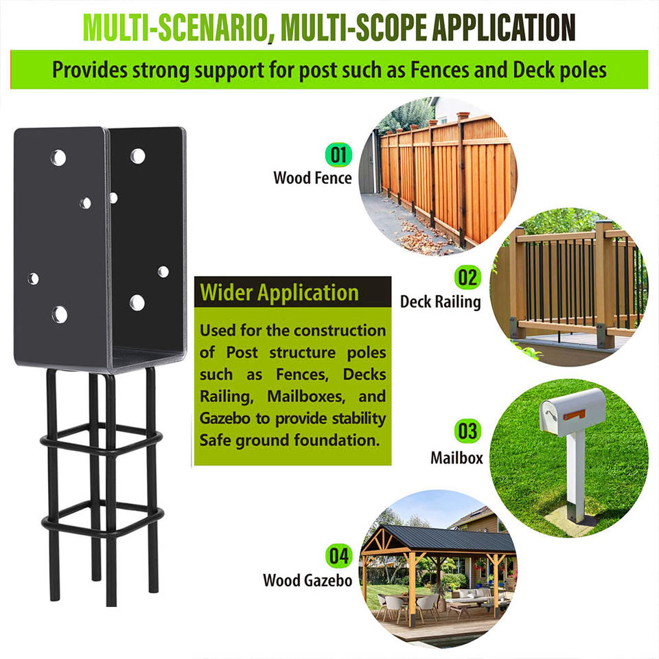 Dimensions du pont Poteau de clôture en acier au carbone en forme de U robuste Base de poteau d'ancrage en béton 2 pièces/ensemble pour porte de clôture et sécurité à la maison