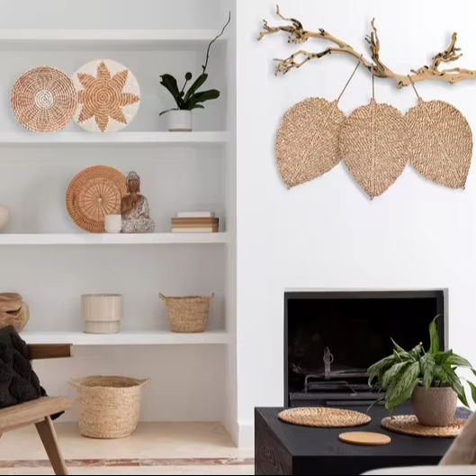 Assiette décorative en jonc de mer faite à la main Décoration murale panier en spirale Sculpture murale, ensemble de 3 assiettes artisanales d'art mural pour la maison et le club