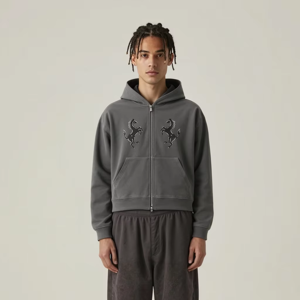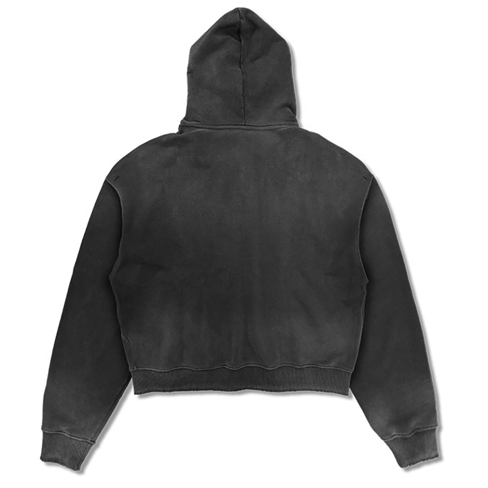 Sweat à capuche unisexe zippé déstructuré, brodé, délavé, effet usé, coupe courte, surdimensionné, personnalisé pour homme