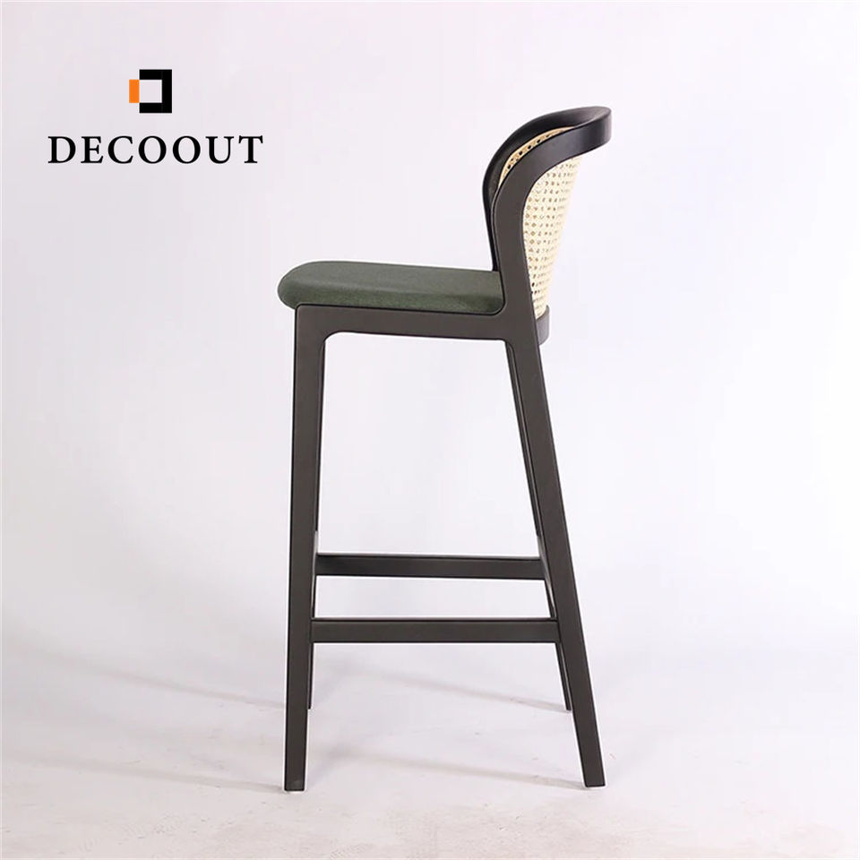 Tabouret de bar en bois massif avec dossier en rotin noir de style scandinave moderne Decoout pour restaurant, café, cuisine et bar à domicile