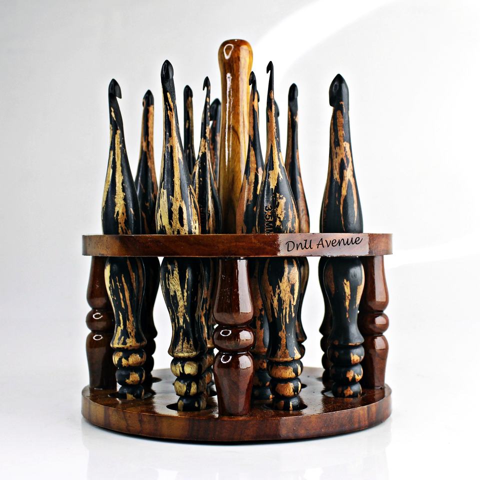 Crochets en bois de neem naturel, ergonomiques, faits à la main, lot de 6x4 pour le tricot et le crochet, avec support