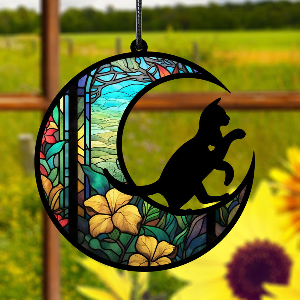 Pendentif décoratif pour fenêtre Cadeau de sympathie pour les amoureux des animaux Attrape-soleil en acrylique pour chien et chat