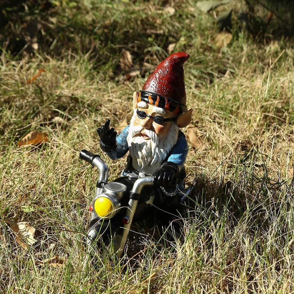 Décoration Jardin doigt Nain Équitation Moto Résine Artisanat Nain Barbe Blanche Vieil Homme personnalisé jardin résine décor