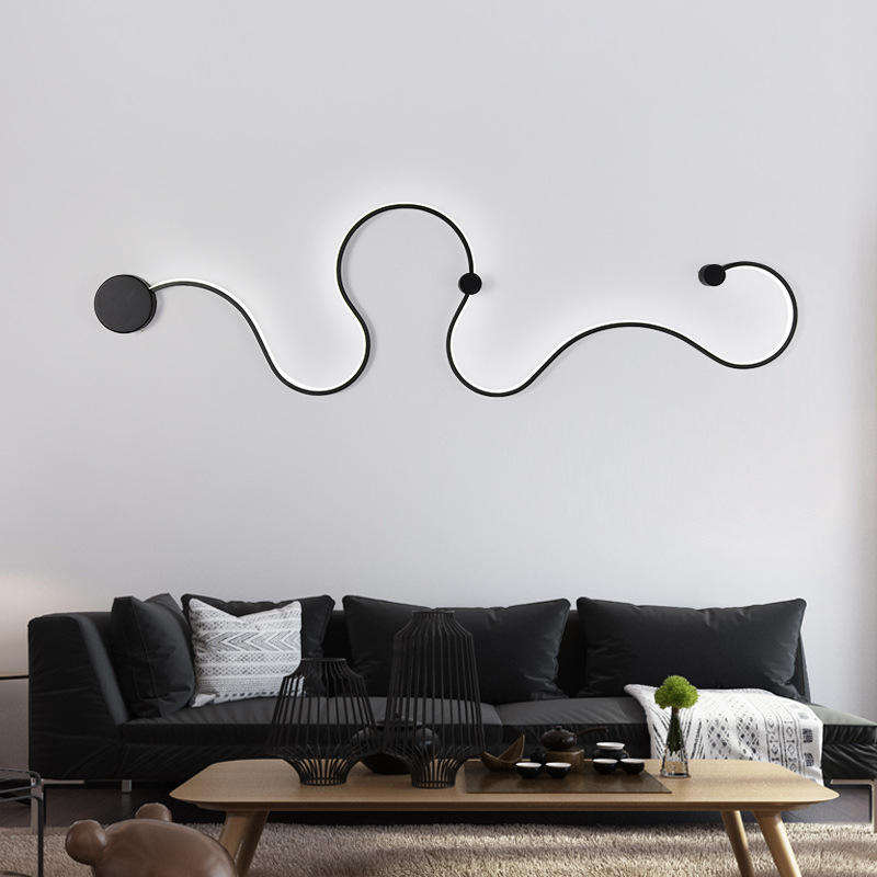 Applique murale incurvée en forme de serpent irrégulière de décoration lampe chambre à coucher longue bande LED luminaires muraux