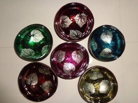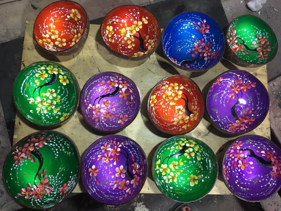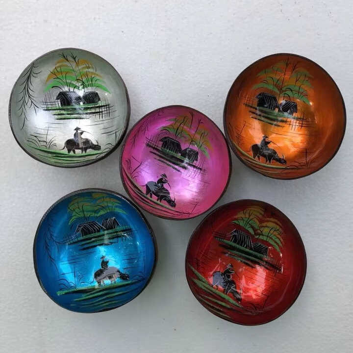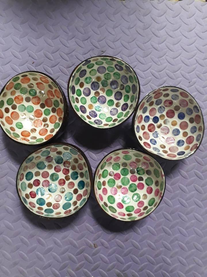 Bol décoratif en coquille de noix de coco avec incrustation de nacre, fait main au Vietnam, pour cadeau et décoration.