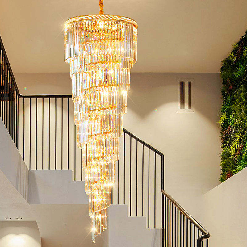 Suspension de décoration pour hôtel lustre en cristal extra large et longue spirale luxe pour Villa Stair