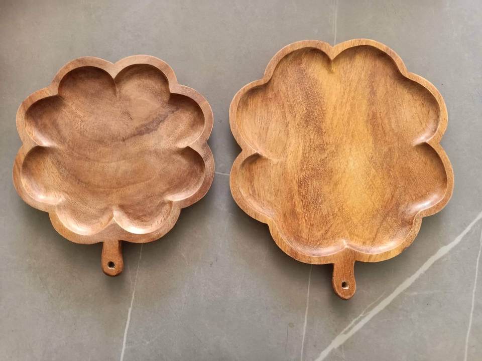 Assiettes décoratives en forme de feuille d'acacia, herbes texturées en bois naturel, assiettes d'art de service pour aliments