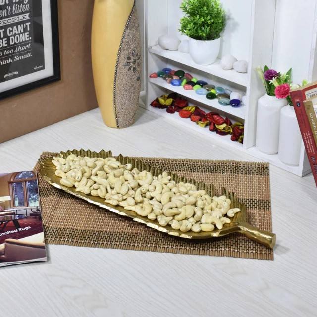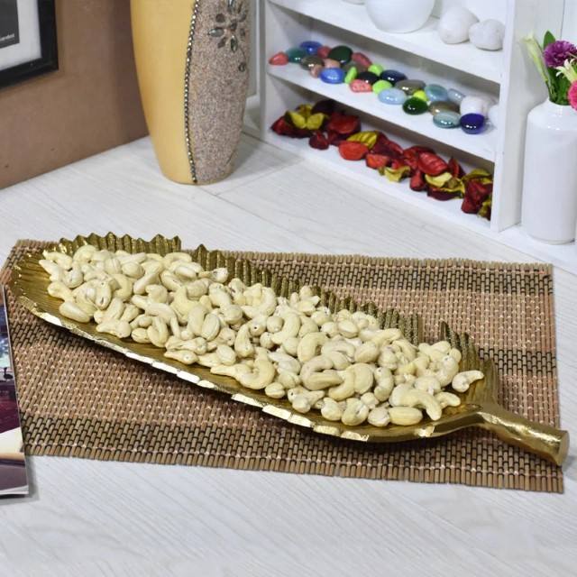 Plateau décoratif en aluminium avec revêtement couleur or Plateau avec revêtement couleur ancienne Assiette à pain Michael Aram Sagou Palmier Nouvelles feuilles de service