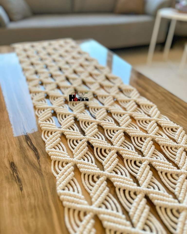 Chemin de table décoratif bohème en tricot, tissé à la main en coton et dentelle, centre de table de luxe pour mariage, fête, restaurant, écologique