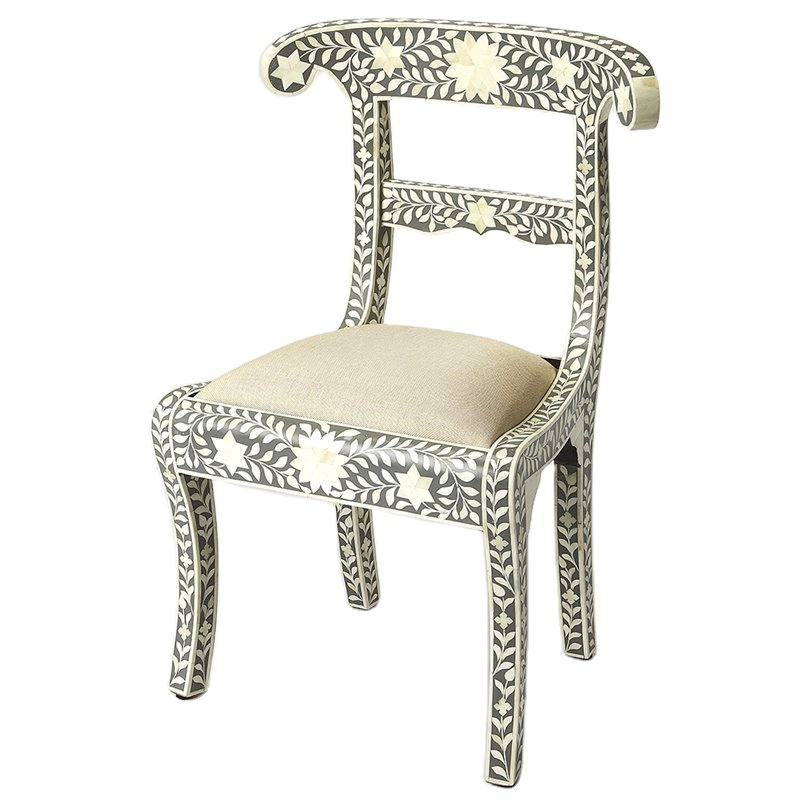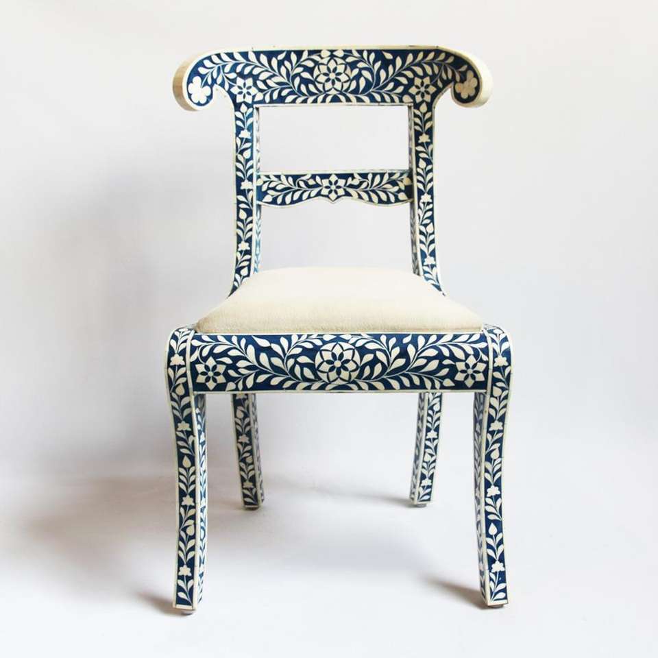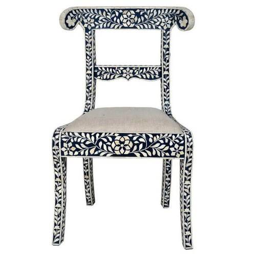 Chaise décorative en incrustation d'os à motif floral en provenance d'Inde