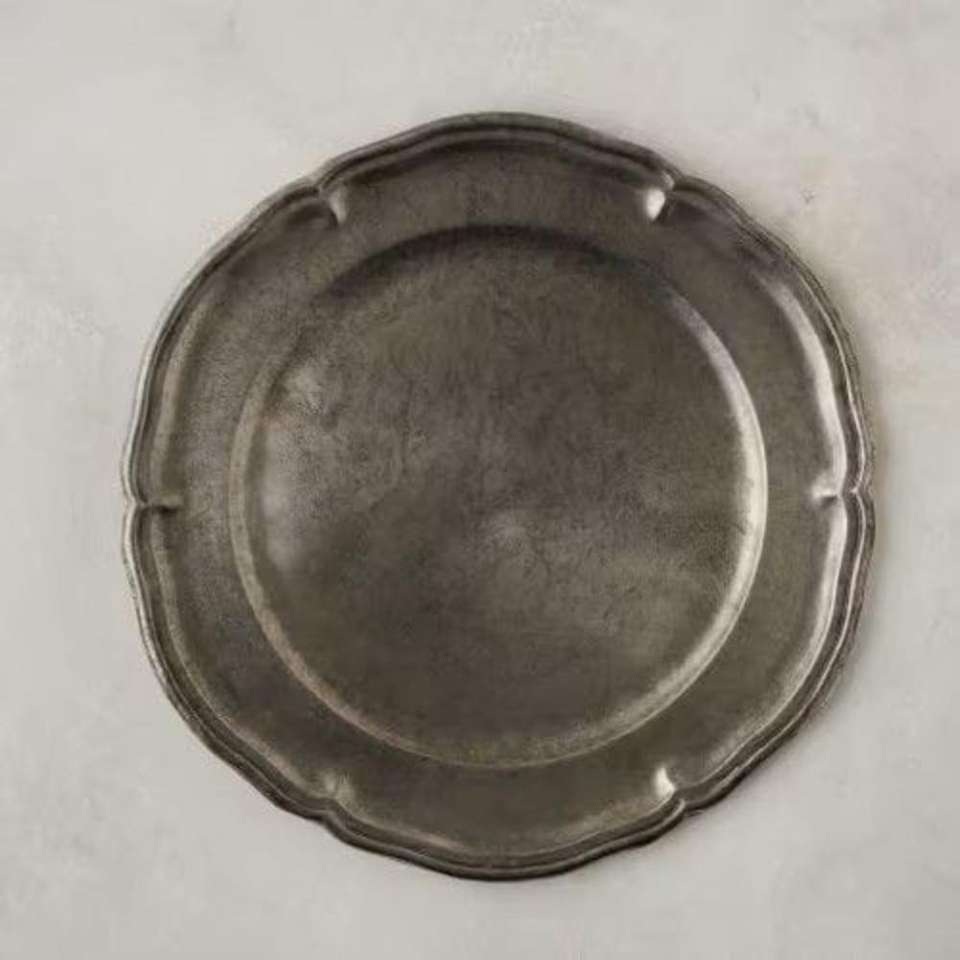 Assiette de présentation décorative en laiton, résistante à la rouille, compatible lave-vaisselle, 25 cm, taille personnalisée, assiette et plat argentés, fournitures pour hôtels et événements