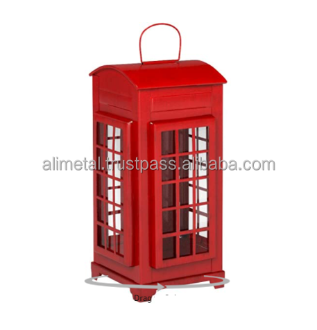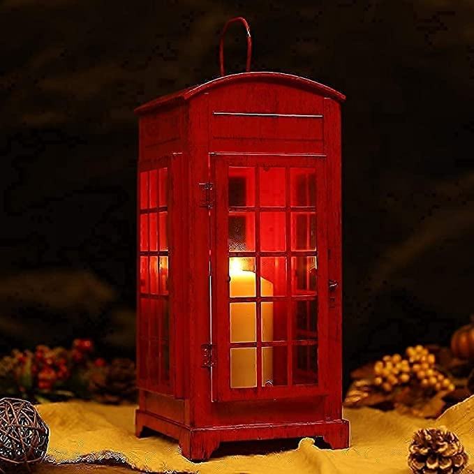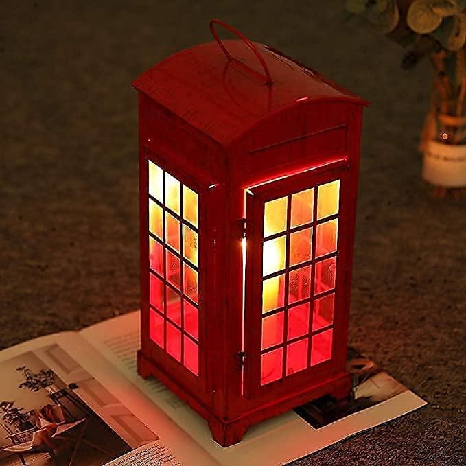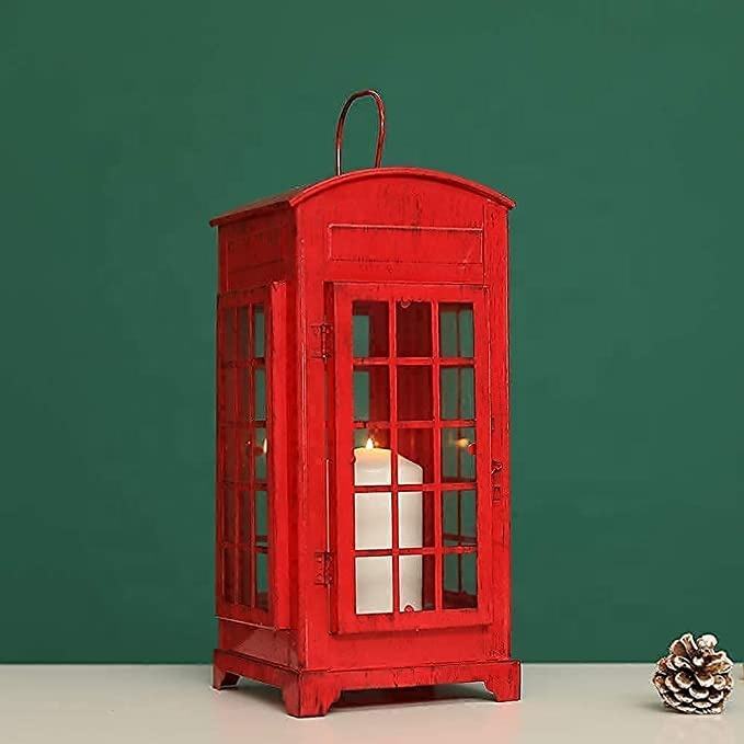 Lanterne décorative pour bougie, lanterne en forme de cabine téléphonique, lanterne suspendue en forme de boîte téléphonique, porte-bougie en métal pour salon